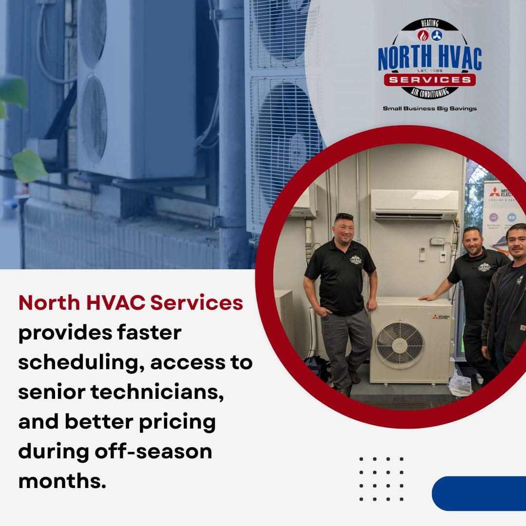 Original Source: https://www.northhvacservices.com/why-winter-months-are-the-smartest-time-for-off-season-ac-installation-better-equipment-and-technician-access/